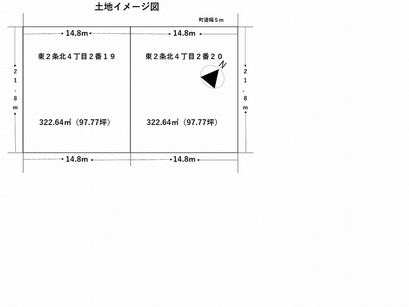 2番19 322.64㎡(97.77坪) 2番20 322.64㎡(97.77坪) 計 645.28㎡(195.54坪)